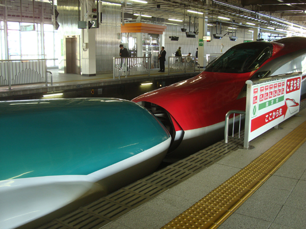 -- from Sendai to Tokyo: two trains connecting - Hayabusa and Komachi