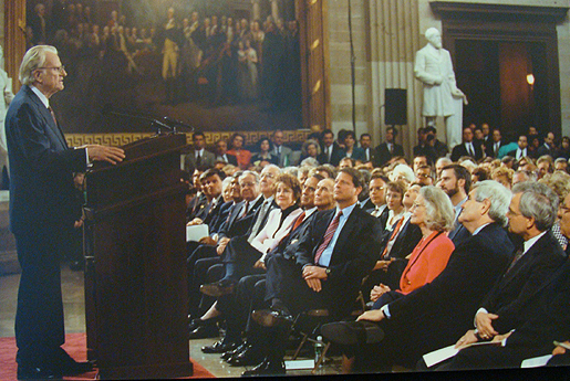 Billy Graham speaking in the Capitol Rotunda after he and his wife